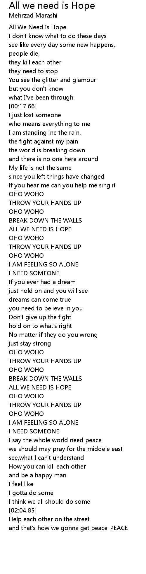 All We Need Is Hope |