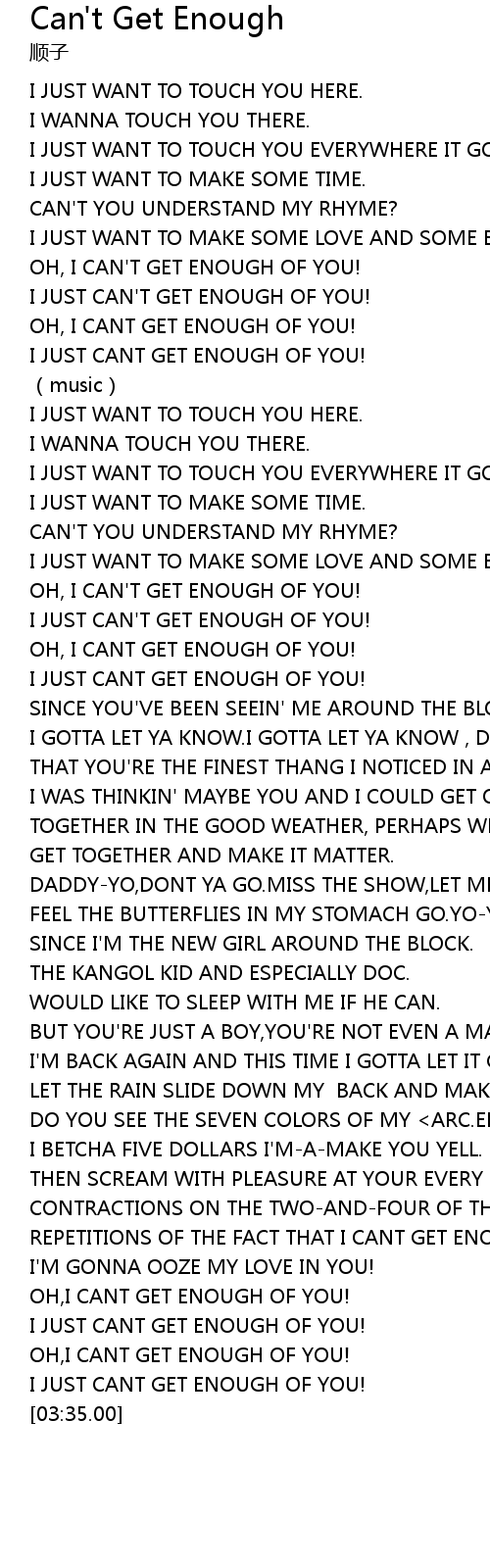 | [01:37.00] | OH, I CAN'T GET ENOUGH OF YOU! |