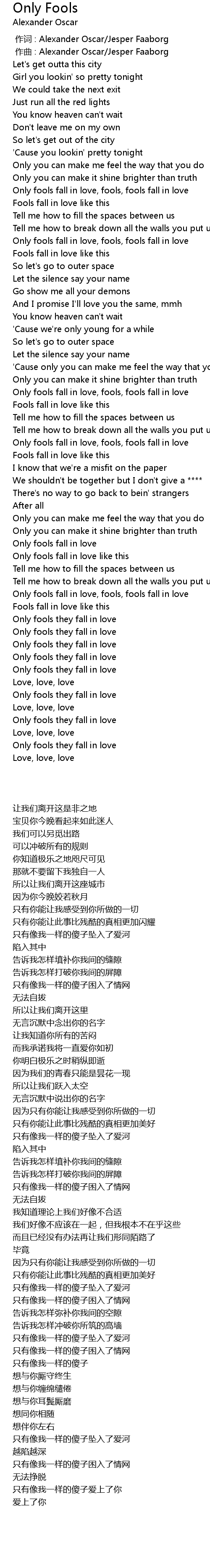| [00:45.500] | Only fools fall in love, fools, fools fall in love |