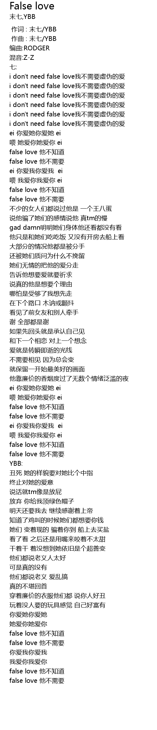 | [00:07.796] | i don't need false love我不需要虚伪的爱 |
