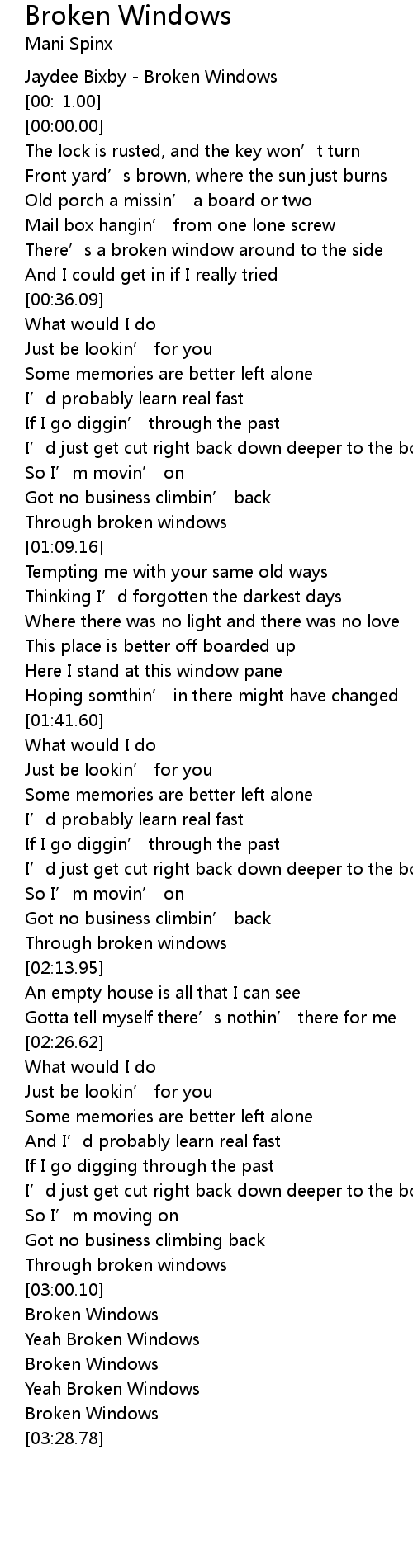 | [03:19.75] | Yeah Broken Windows |