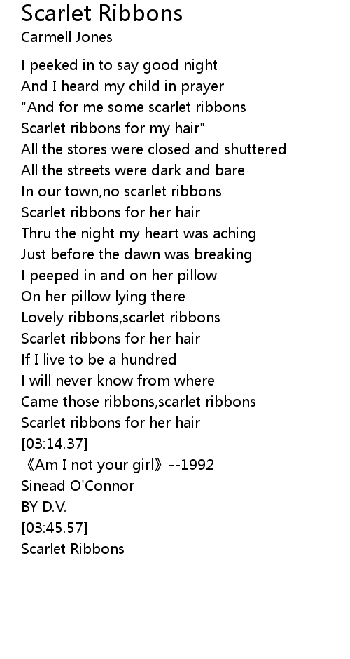 | [00:29.54] | Scarlet ribbons for my hair" |