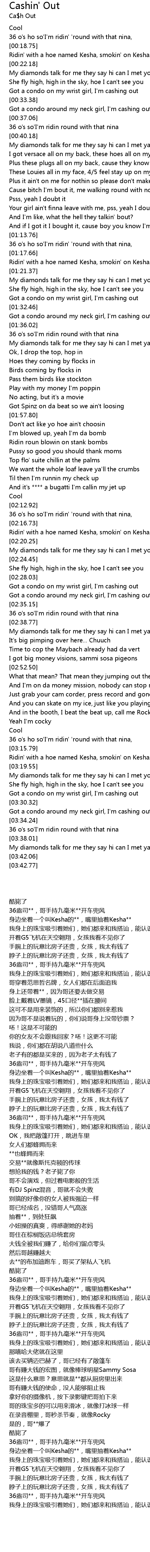 Ridin' with a hoe named Kesha, smokin' on Kesha... |