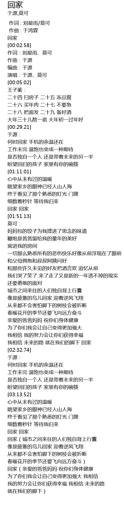 | [01:31.69] | 回家 回家 |