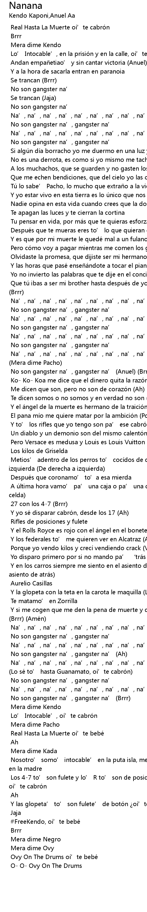 | [01:36.832] | No son gangster na', gangster na' Anuel Brrr |