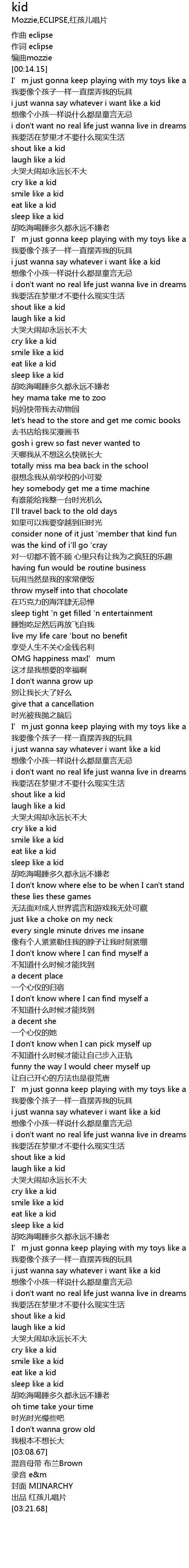 | [00:40.87] | i just wanna say whatever i want like a kid |