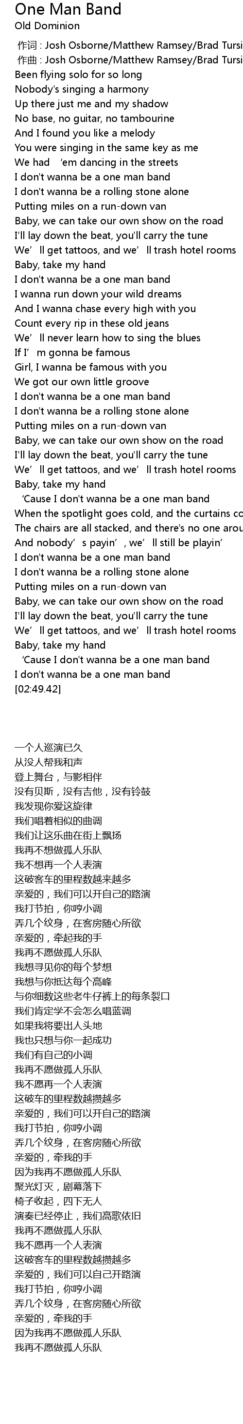 | [02:39.71] | ' Cause I don' t wanna be a one man band |