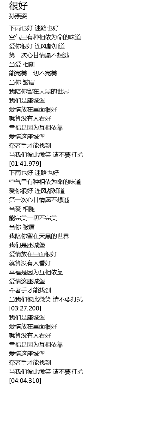 | [03:02.280] | ai qing fang zai li mian hen hao |
