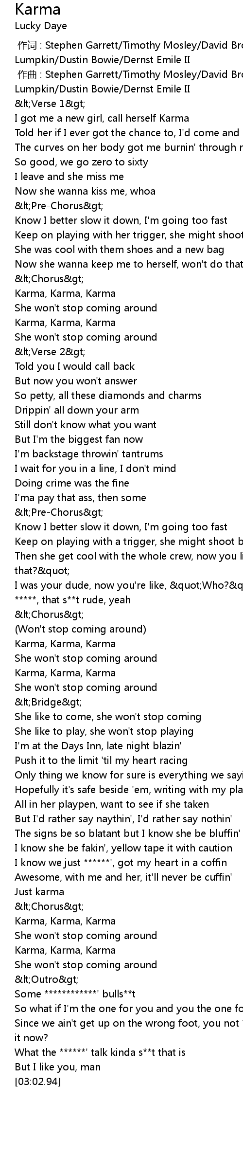 | [00:16.24] | I got me a new girl, call herself Karma |