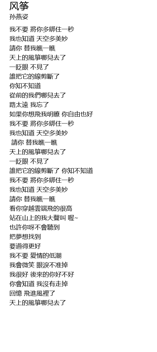 | Song | 风筝 |