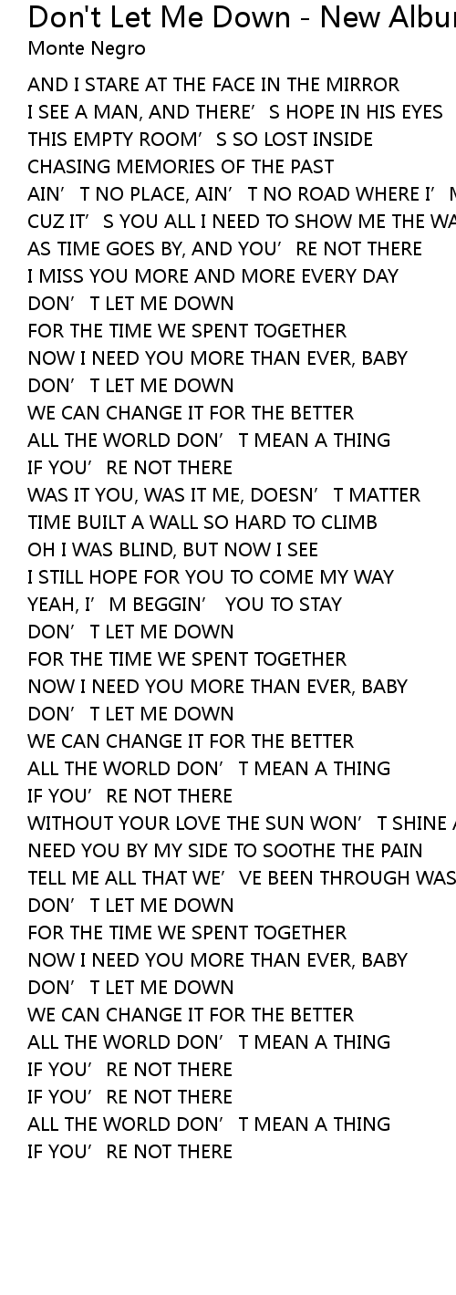 | [01:42.83] | WAS IT YOU, WAS IT ME, DOESN' T MATTER |