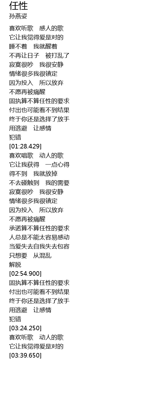 | [03:00.960] | 固执算不算任性的要求 |