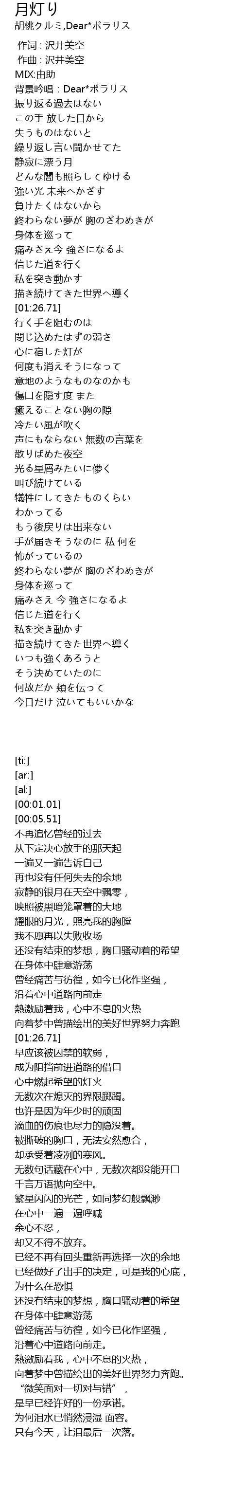 | [00:05.51] | 背景吟唱:Dear*ポラリス |
