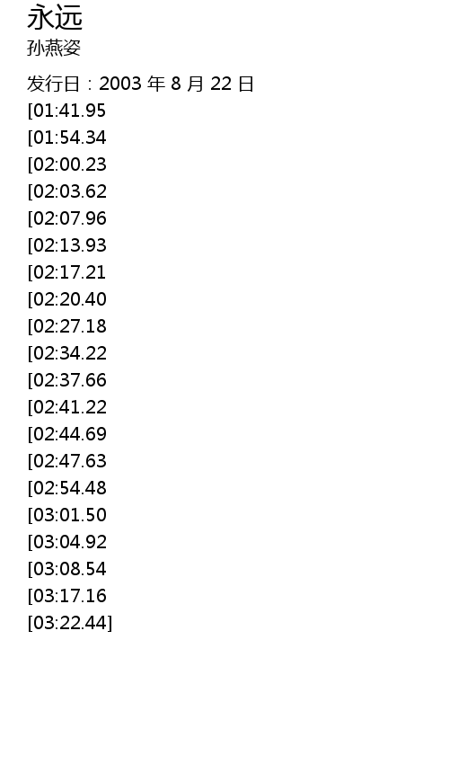 | [00:41.41][02:20.40] | 永远 曾经在哪里实现 |
