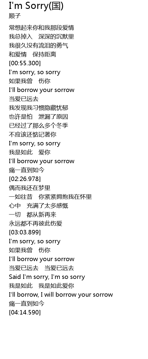 | [00:56.600] | I' m sorry, so sorry |