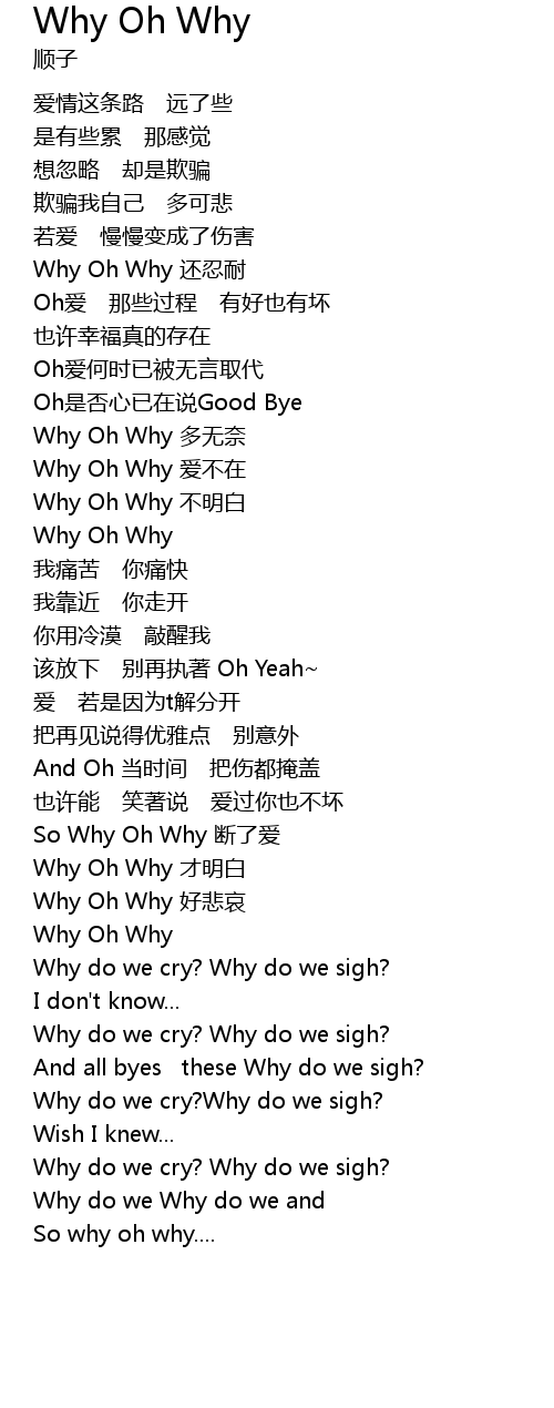 | [03:35.46] | Why Oh Why hǎo bēi āi |