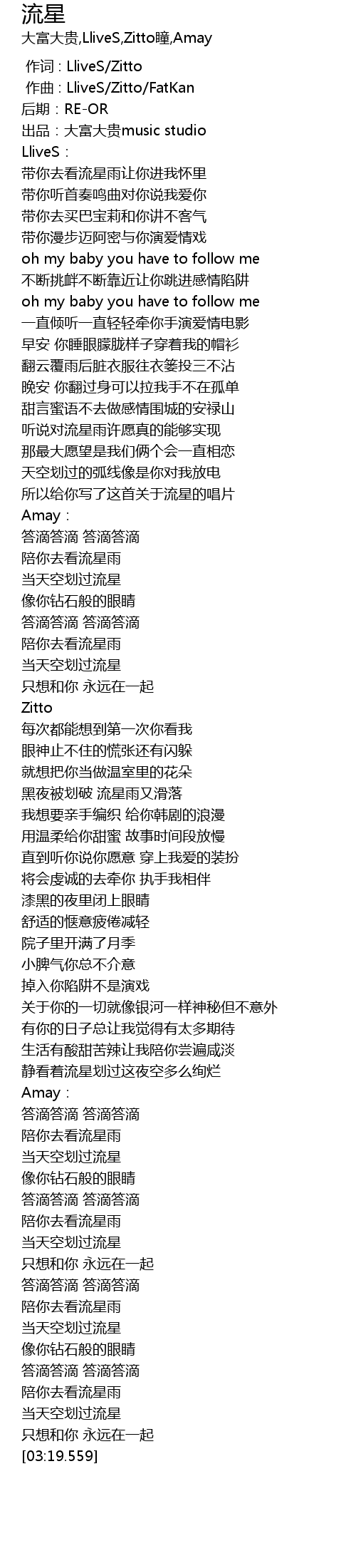 | [02:41.683] | péi nǐ qù kàn liú xīng yǔ |