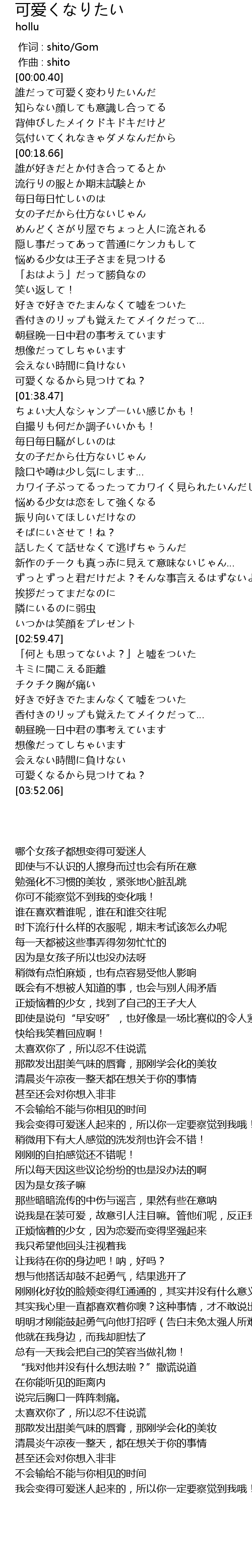 | [00:00.93] | 誰だって可愛く変わりたいんだ |