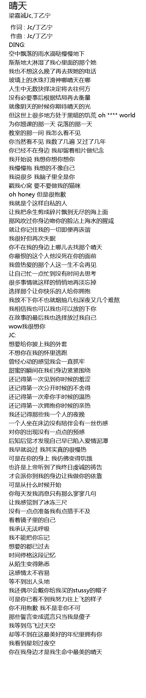 | [00:00.000] | 作词 : Jc/丁乙宁 |