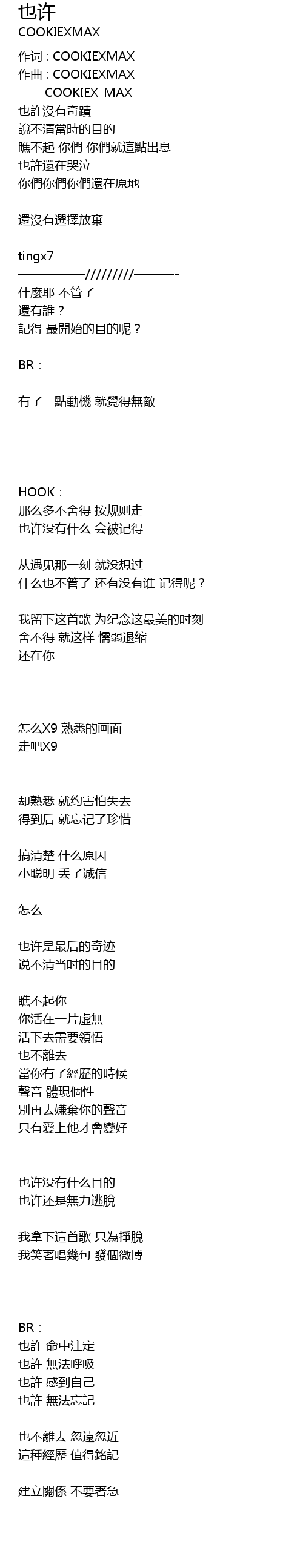 | 作词 : COOKIEXMAX | |