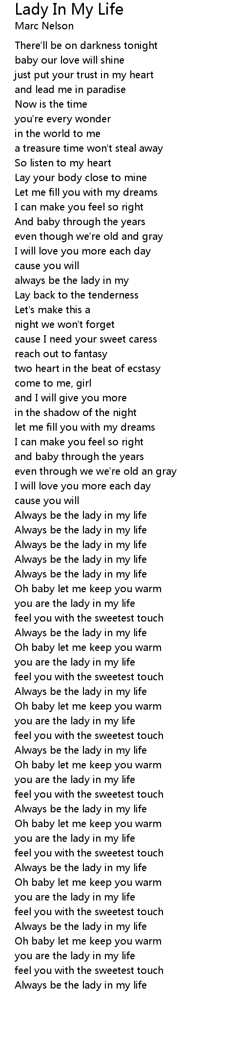 you are the lady in my life |