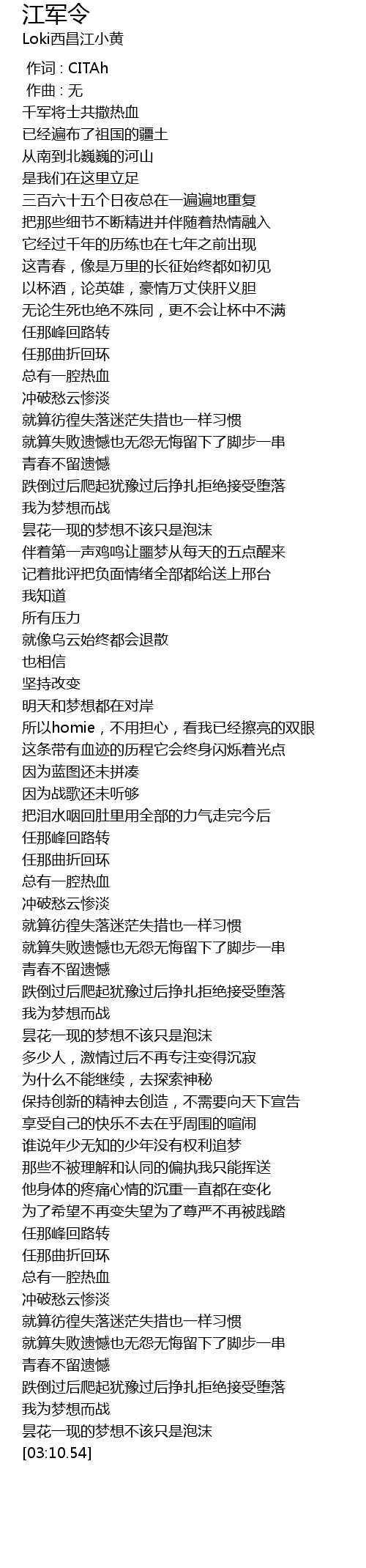 | [01:38.48] | yīn wèi zhàn gē hái wèi tīng gòu |