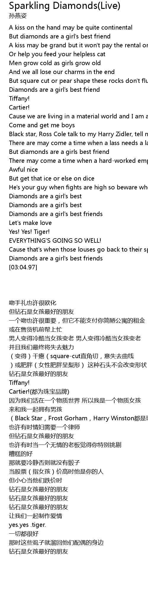 But diamonds are a girl's best friend |