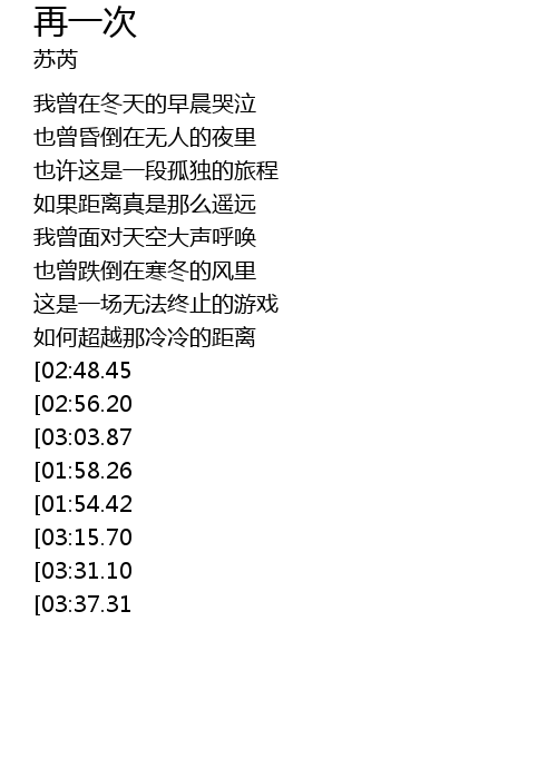 | [01:38.57][03:03.87] | #再一次再一次 |