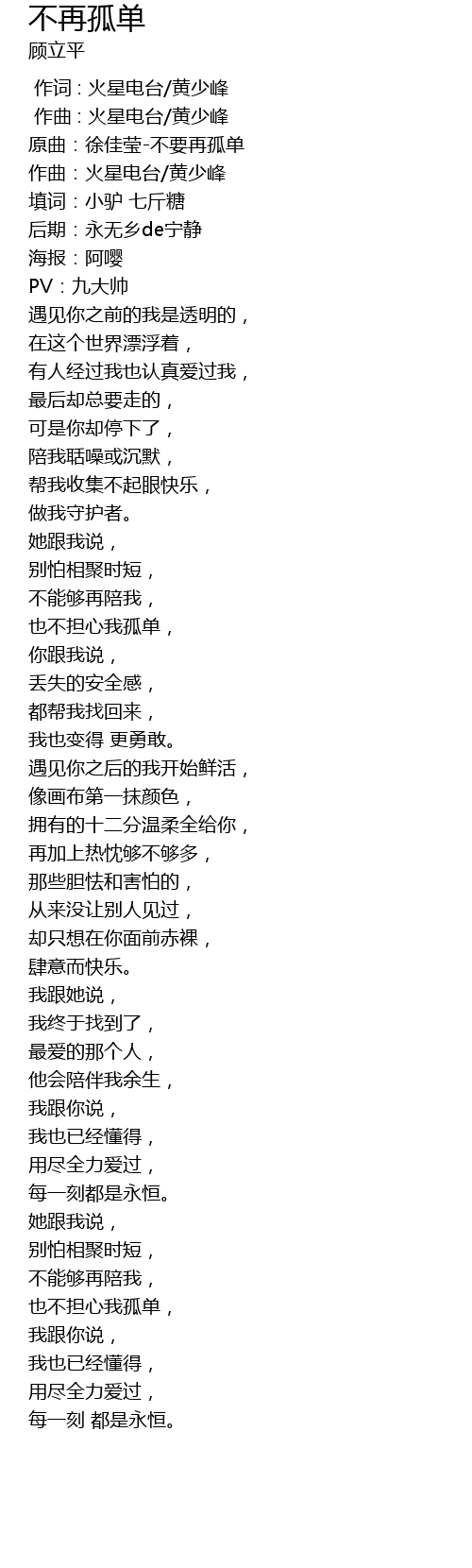 | Song | 不再孤单 |