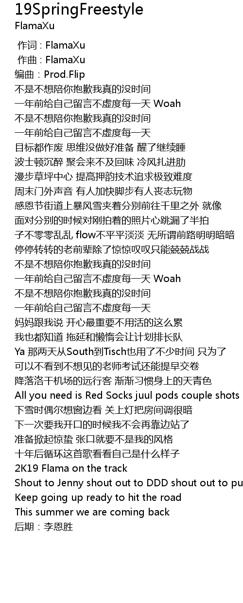 | [00:01.000] | zuò qǔ : FlamaXu |