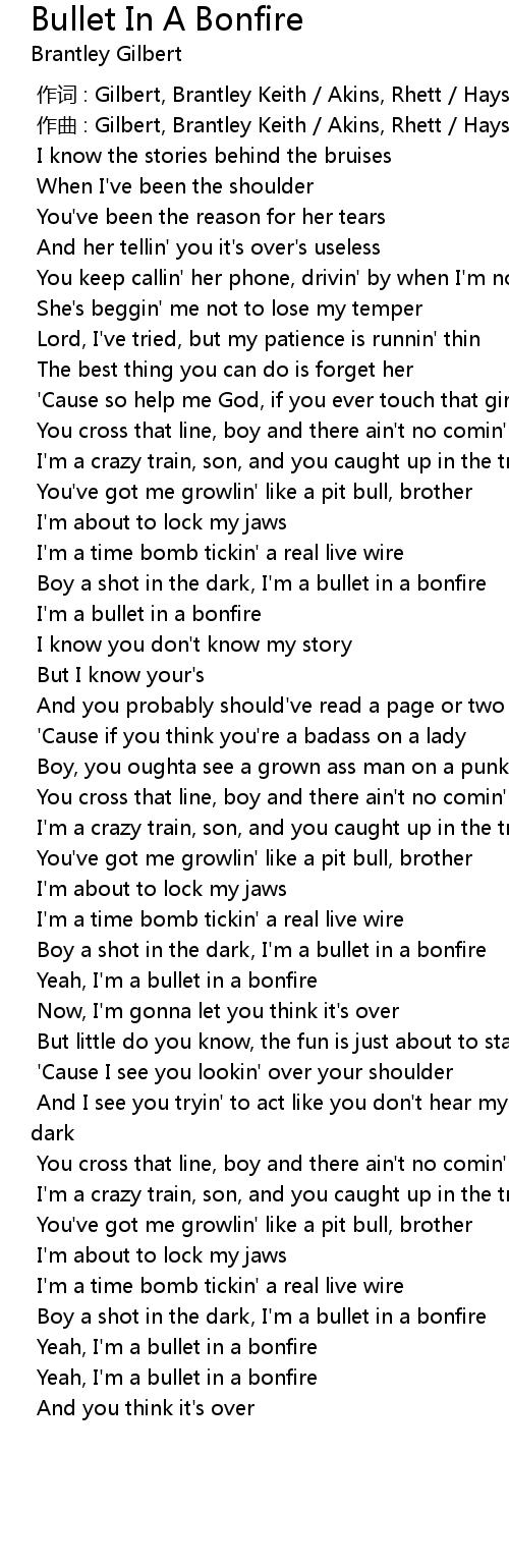 | [00:00.000] | 作词 : Gilbert, Brantley Keith / Akins, Rhett / Hayslip, Ben |