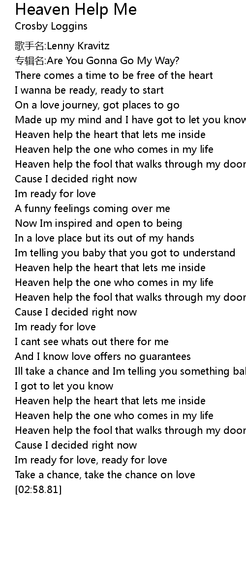 | [02:22.00] | Heaven help the heart that lets me inside |