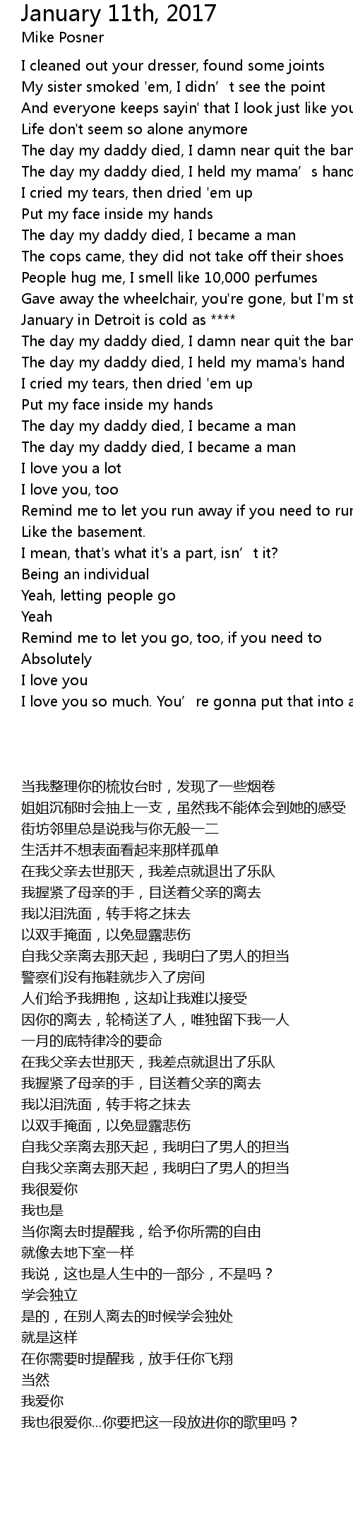 | [01:00.95] | The day my daddy died, I damn near quit the band |