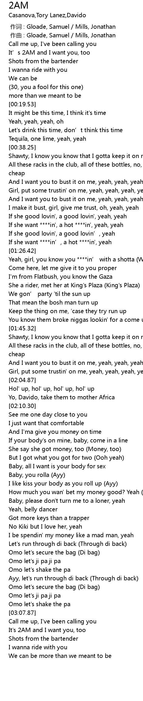 | [02:07.50] | Yo, Davido, take them to mother Africa |