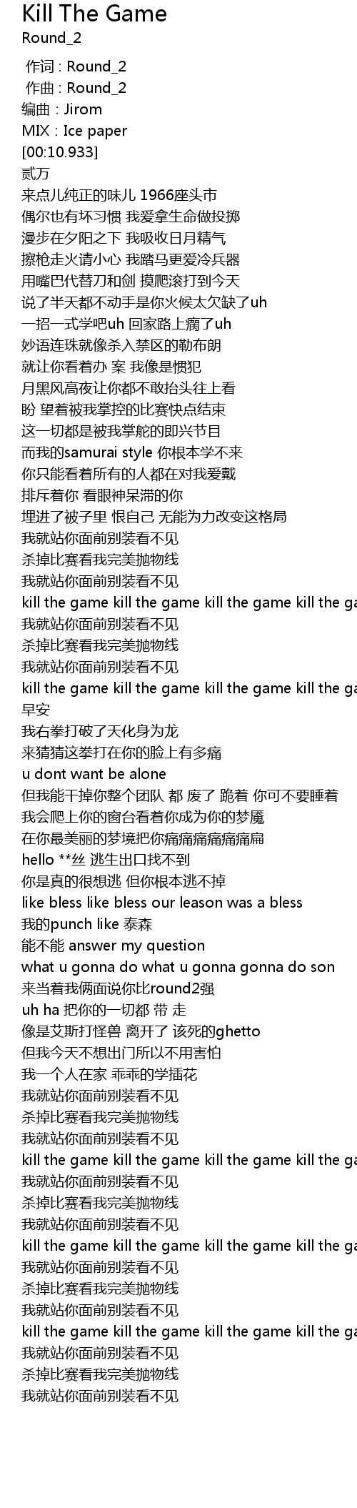| [02:30.505] | kill the game kill the game kill the game kill the game |