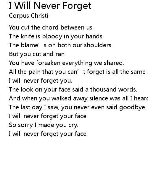 | Song | I Will Never Forget |