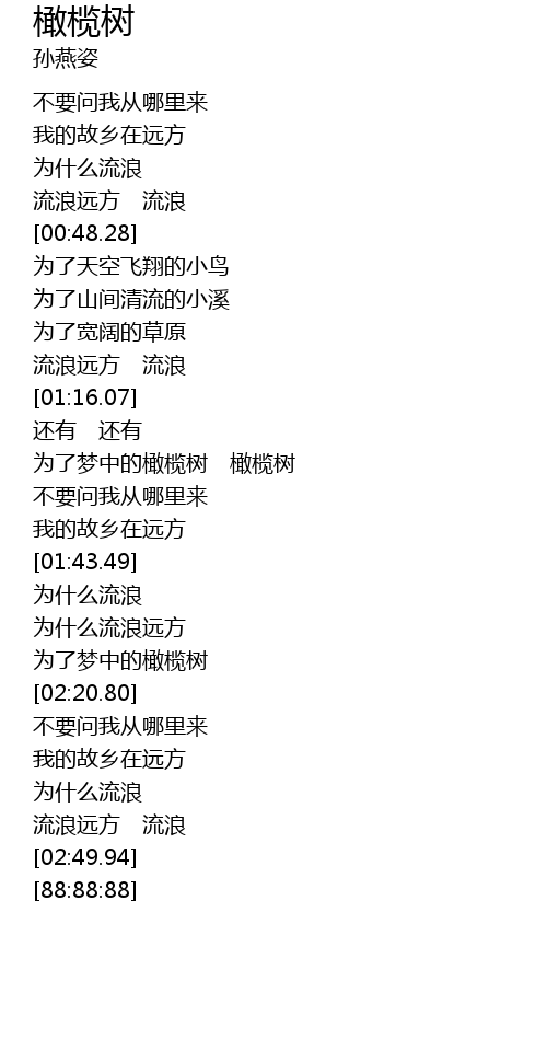 | [01:21.19] | 为了梦中的橄榄树 橄榄树 |