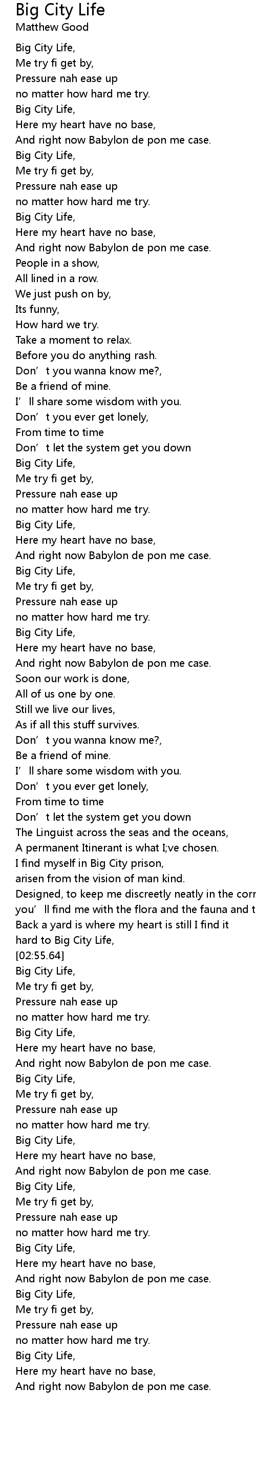 | [02:56.81] | Big City Life, |