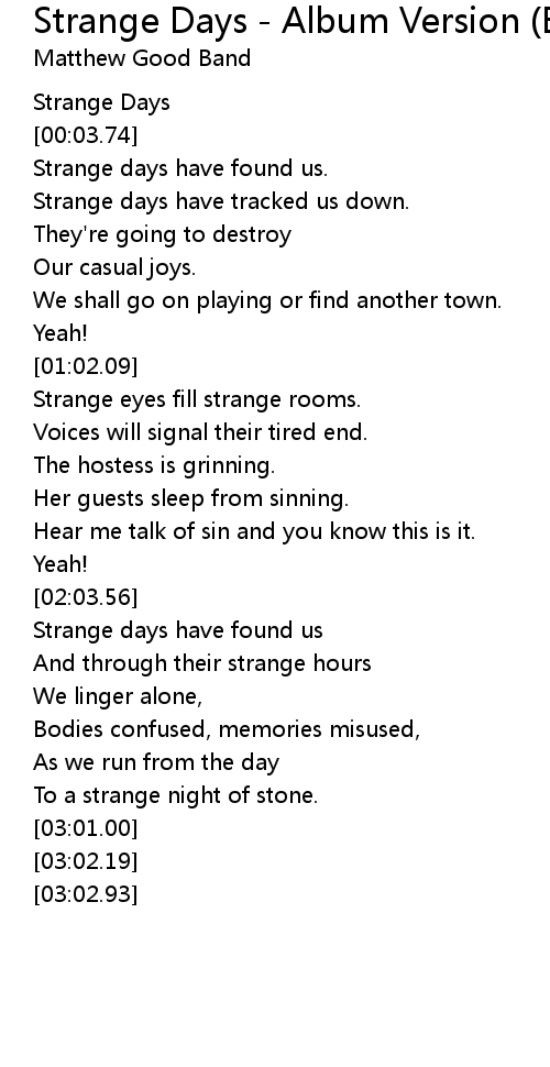 Strange days have tracked us down. |