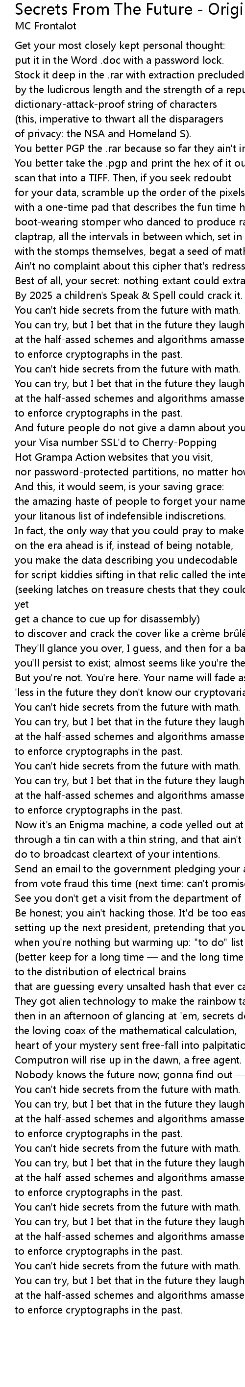 | You can' t hide secrets from the future with math. | |