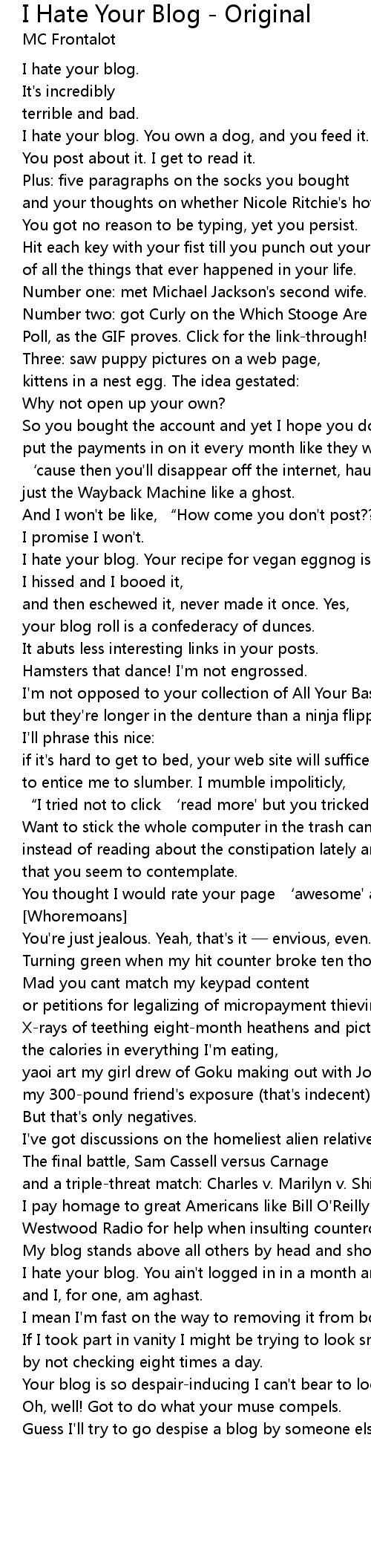 | Song | I Hate Your Blog - Original |