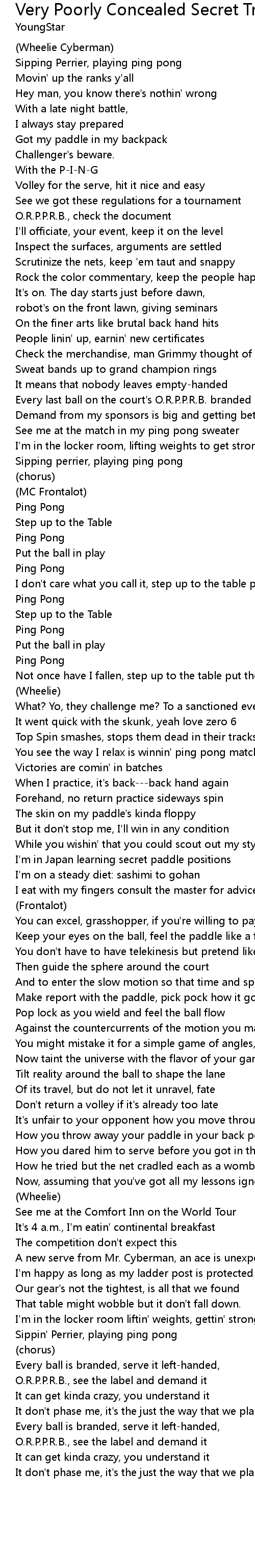Sippin' Perrier, playing ping pong |