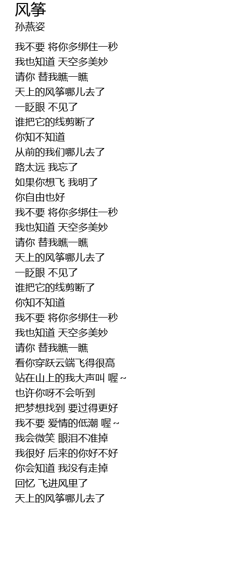 | [00:51.330] | 天上的风筝哪儿去了 |