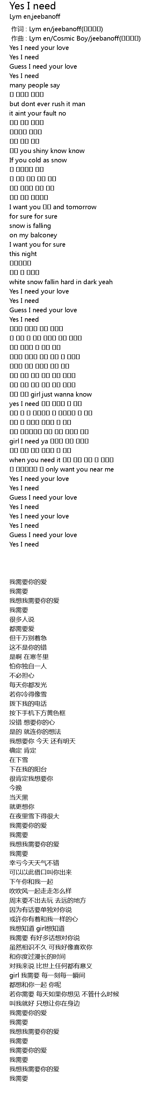 | [00:19.018] | Yes I need your love |