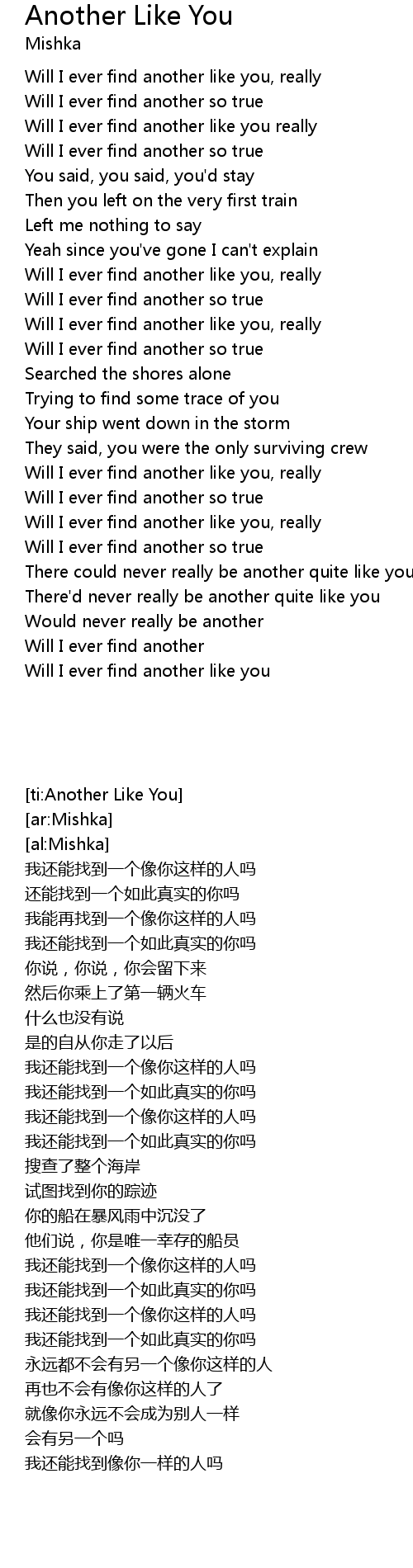 | Will I ever find another like you, really | |