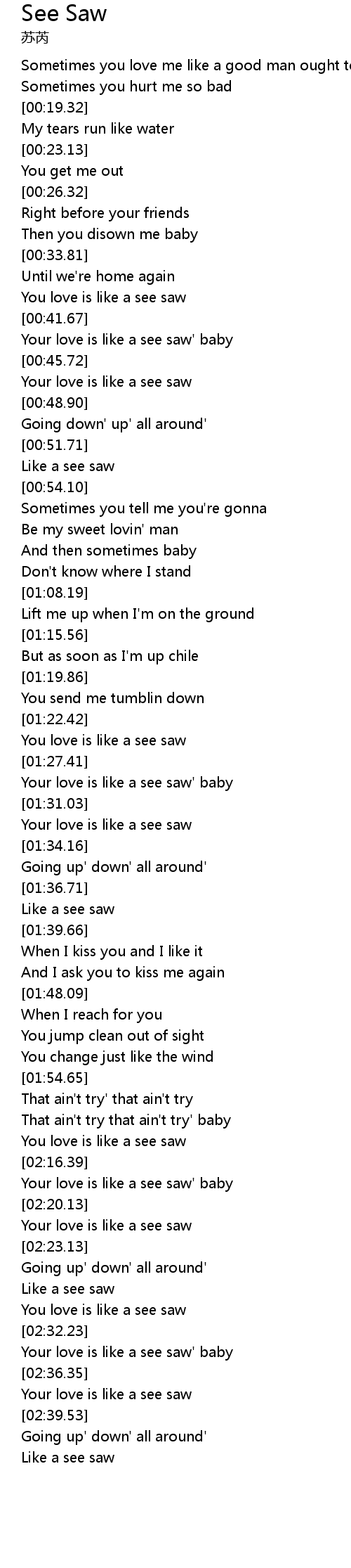 | [00:11.21] | Sometimes you love me like a good man ought to |