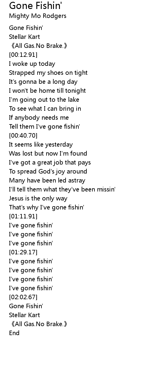 | [00:36.10] | Tell them I' ve gone fishin' |