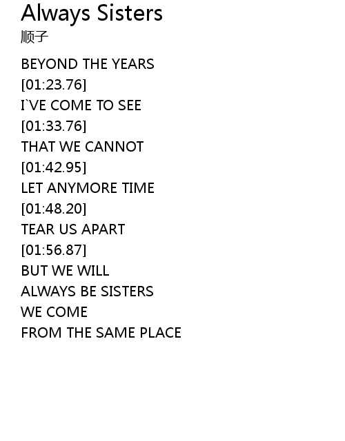 | [02:02.86] | ALWAYS BE SISTERS |