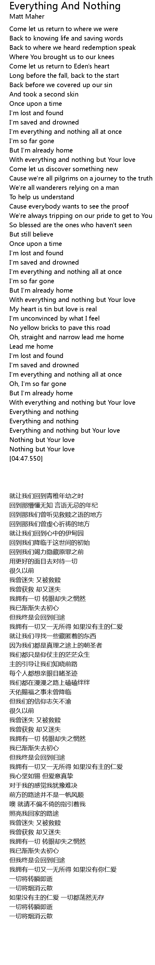 Everything and nothing but Your love |