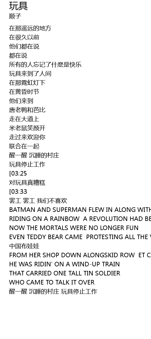 | [04:13] | 醒一醒 沉睡的村庄 玩具停止工作 |